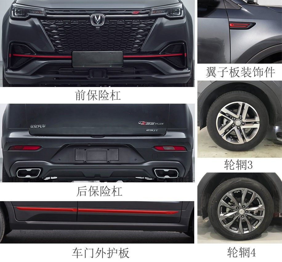 近日从工信部获得了长安CS55 PLUS新车型的申报信息,从申报图来看,CS55 PLUS新车型在普通版的基础上增加了运动版本。其中运动版车型将采用深色设计,其进气格栅和镀铬条均进行黑化处理,同时在格栅、翼子板和车门下方加入了红色饰条,车尾还采用了类似双边共四出的排气口造型,整体设计相比普通版更运动和个性。而动力部分,新车配备了长安最新的蓝鲸NE 1.5T直喷发动机,最大功率为180马力,最大扭矩为300牛·米,传动预计匹配6MT或6速手自一体变速箱。