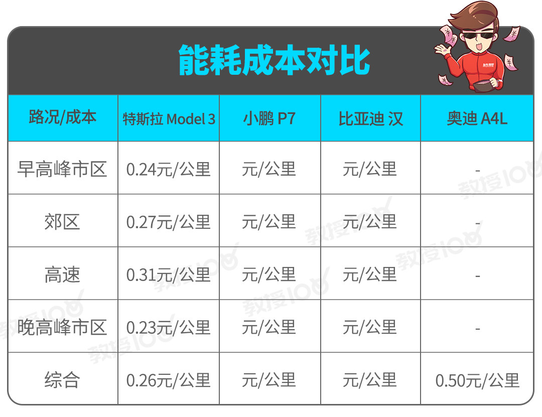 换算为更直观的能耗成本,以充电运营商1.6元/度电的价格来算,特斯拉Model 3在早高峰市区电耗成本大概为0.24元/公里,能耗成本还不到燃油经济性理想的传统燃油车的一半,不折不扣的通勤利器。
