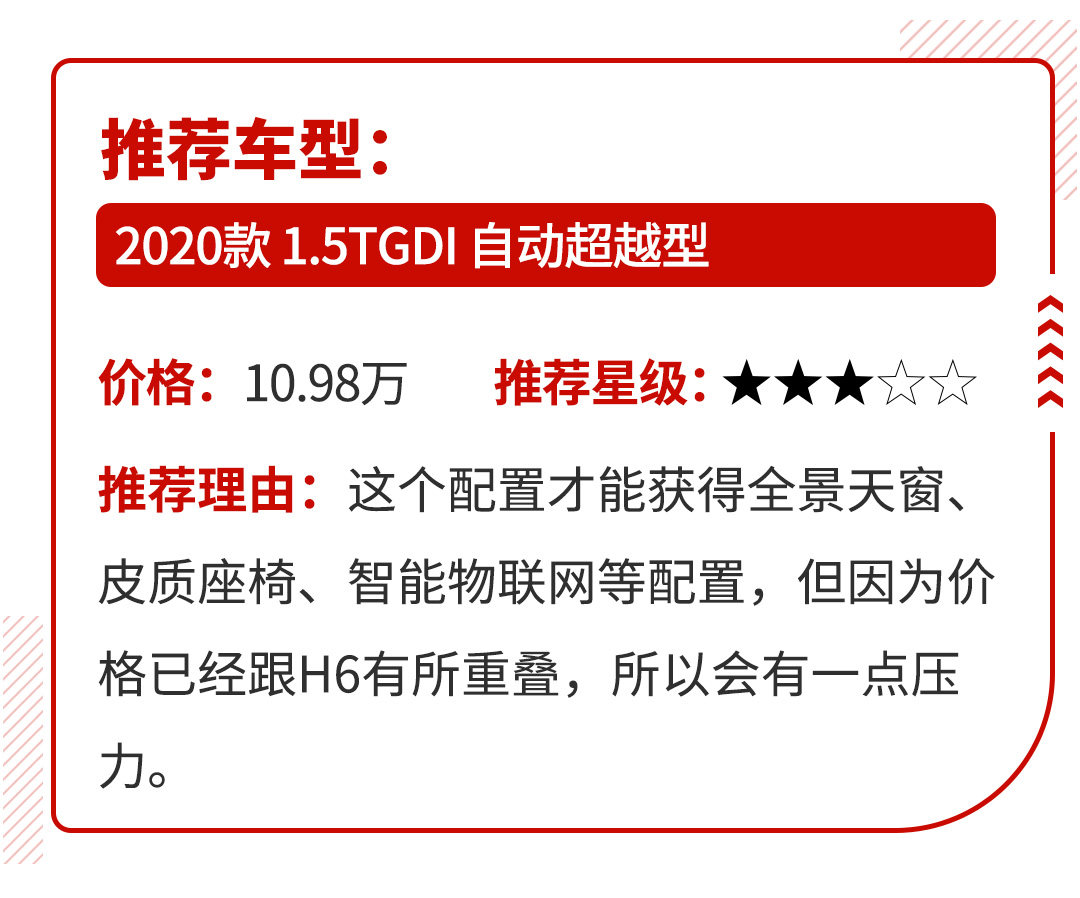 预算更高点,选择就更多了。哈弗H6有这么多款车型,你自然能挑到合适自己的那款。说了这么多,H6的核心还是其三大件,全都是长城自主研发,代表了长城最顶尖的水平。1.5T、2.0T涡轮增压发动机+7速双离合变速箱稳定性良好,这么多年没出啥大问题(这不是靠嘴说的,确实有这么多车主见证)。