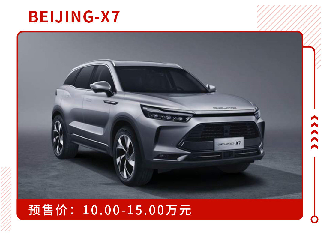 最后一款要介绍的车还未上市,目前正在预售状态,它就是BEIJING-X7,一款中型SUV,预售价为10.00-15.00万。这款车的轴距达到了2800mm,在中型SUV中也是个不错的水平,看来现在很多国产车都以大空间为卖点了。