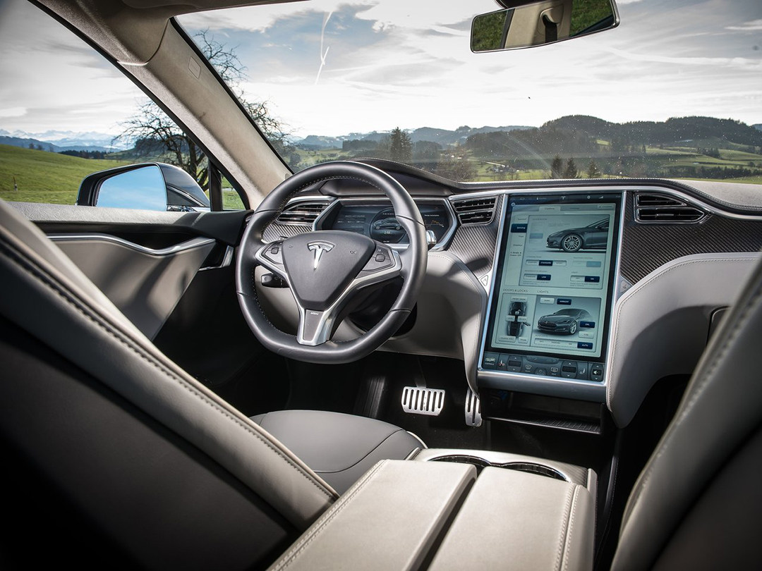 作为一台纯电车,Model S车内取消了传统物理按键,绝大多数的功能控制被17英寸的中控屏所代替,并且还支持OTA软件推送更新。