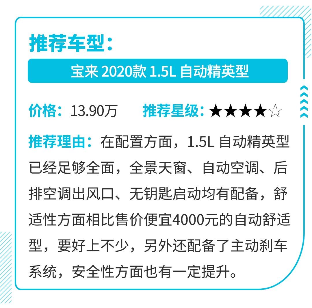 另外因为1.5L宝来低配的几款车型为手动挡,而1.0T思域和1.2T卡罗拉均为自动挡车型,所以新宝来11.1万元的起步价还有一定水分,我们以各自自动挡车型为例,1.5L宝来自动挡的起步价为12.20万元,比思域/卡罗拉自动挡贵了约2000元。