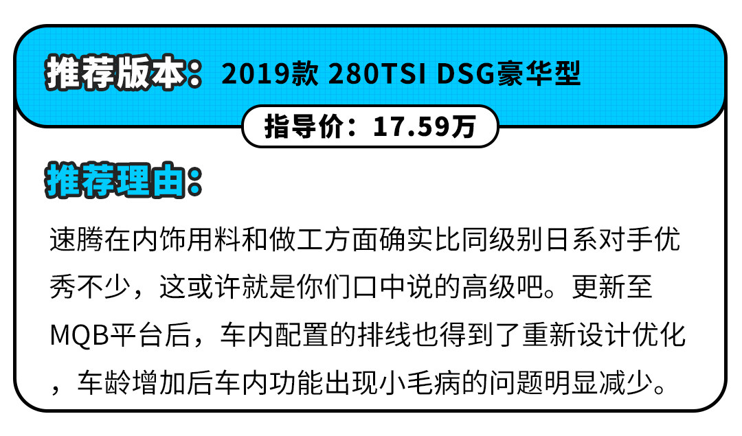 速腾在刚上市的时候曾被网友吐槽大众飘了,售价相较上一代车型确实提升了不少,但MQB平台对车辆做工、行驶质感方面带来的提升也确实值得称赞。在车辆后续优惠到位后,速腾市场销量的上升明显说明了消费者对于现款速腾的肯定。