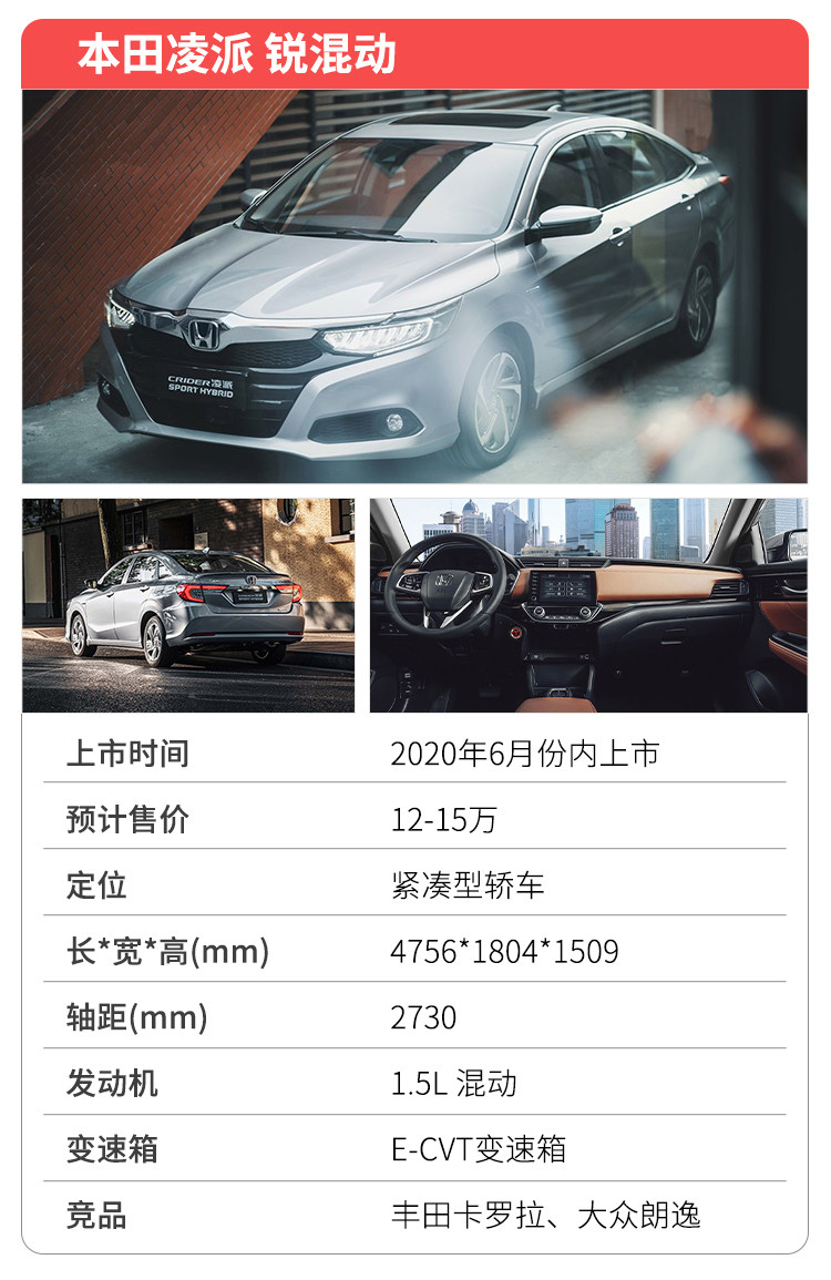 新车为本田凌派的新增车型,基本维持了现款1.0T车型的外观内饰设计,换上了更具空气动力学设计的轮毂,以及能够显示动力输出信息的半液晶仪表盘。新车最大卖点在于搭载了本田最新的双电机混动系统,该混动系统以109马力的1.5L发动机以及131马力的电动机,作为主要动力输出来源,综合最大功率为154马力,相比丰田1.8L混动动力更强,而油耗则是相同的4L/百公里。想要跑得爽,要想马儿不吃草,看来这凌派锐混动做到了。