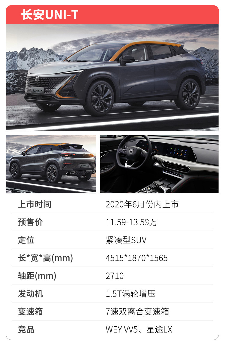UNI-T属于长安品牌最新的引力系列车型,定位紧凑型SUV,它全面打破了长安现有的设计,高腰线的轿跑式车身设计相当抢眼,车内采用了贯穿式双屏设计以及电子挡把,就质感来说属于同价位顶尖的水平的。它更多瞄准的是年轻消费者,所以还带有先进的科技配置,以摄像头了解驾驶者状况,在车机上给到更具情感的反馈,甚至还带有L3级别的驾驶辅助硬件,在未来法规通过后以OTA形式实现升级。有型、高科技的它,无疑能俘掠年轻人欢心,更重要的是它预售价才11.59万起。
