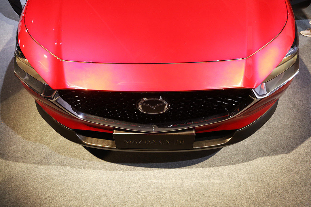 CX-30采用了最新的家族式设计,盾型的繁星式进气格栅尺寸不小,并且下方的镀铬装饰与细长的大灯相衔接,这款紧凑型SUV也能有较大的视觉观感,转向灯则被放置到保险杠下方,让大灯总成设计能够更为简约。