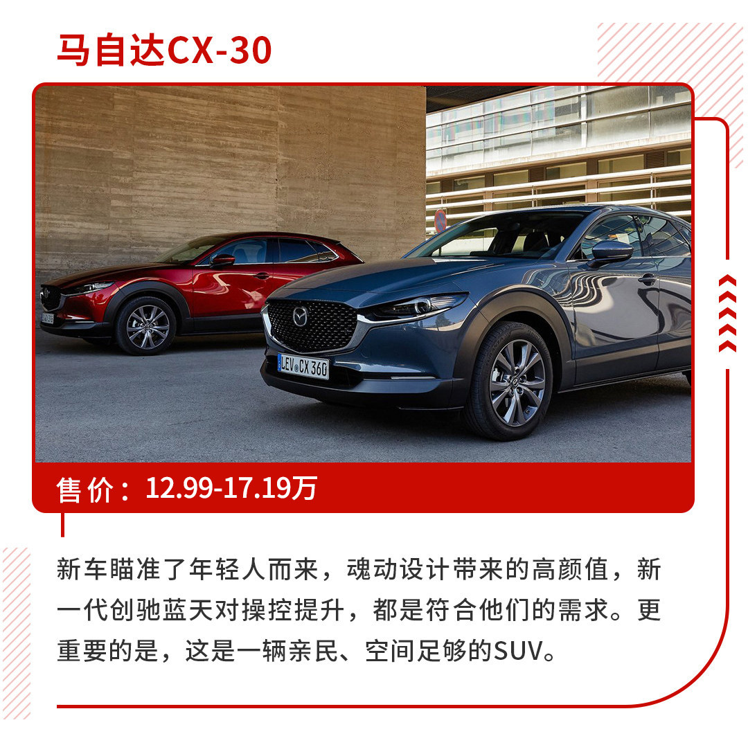 简单总结一下马自达CX-30,它采用了最新的家族式外观内饰设计,这种以圆滑形面突出力量感的外观最受到年轻人喜欢,车厢不仅有着强烈的驾驶氛围,还非常实用。更重要的是,在性能方面这次时代马自达产品,表现出领先同级的水平。