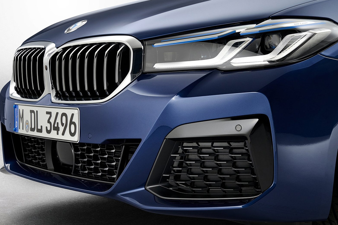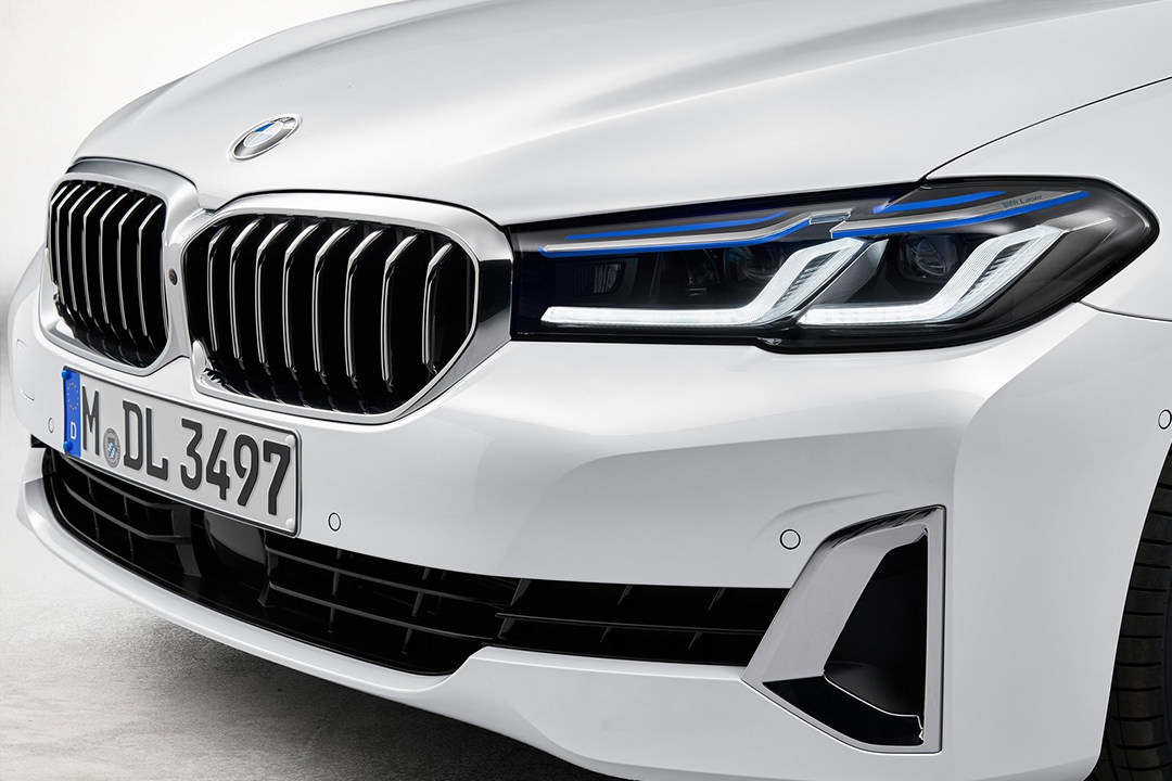 外观改变的点比较多,全新的双L型前大灯取代原来的天使眼,跟新7系颇为相似,不在圆润,保留开眼角设计,并分开两截;同时尾灯也进行了一定的调整,灯组轮廓更突出立体。总体上比以往的5系更强调现代感。