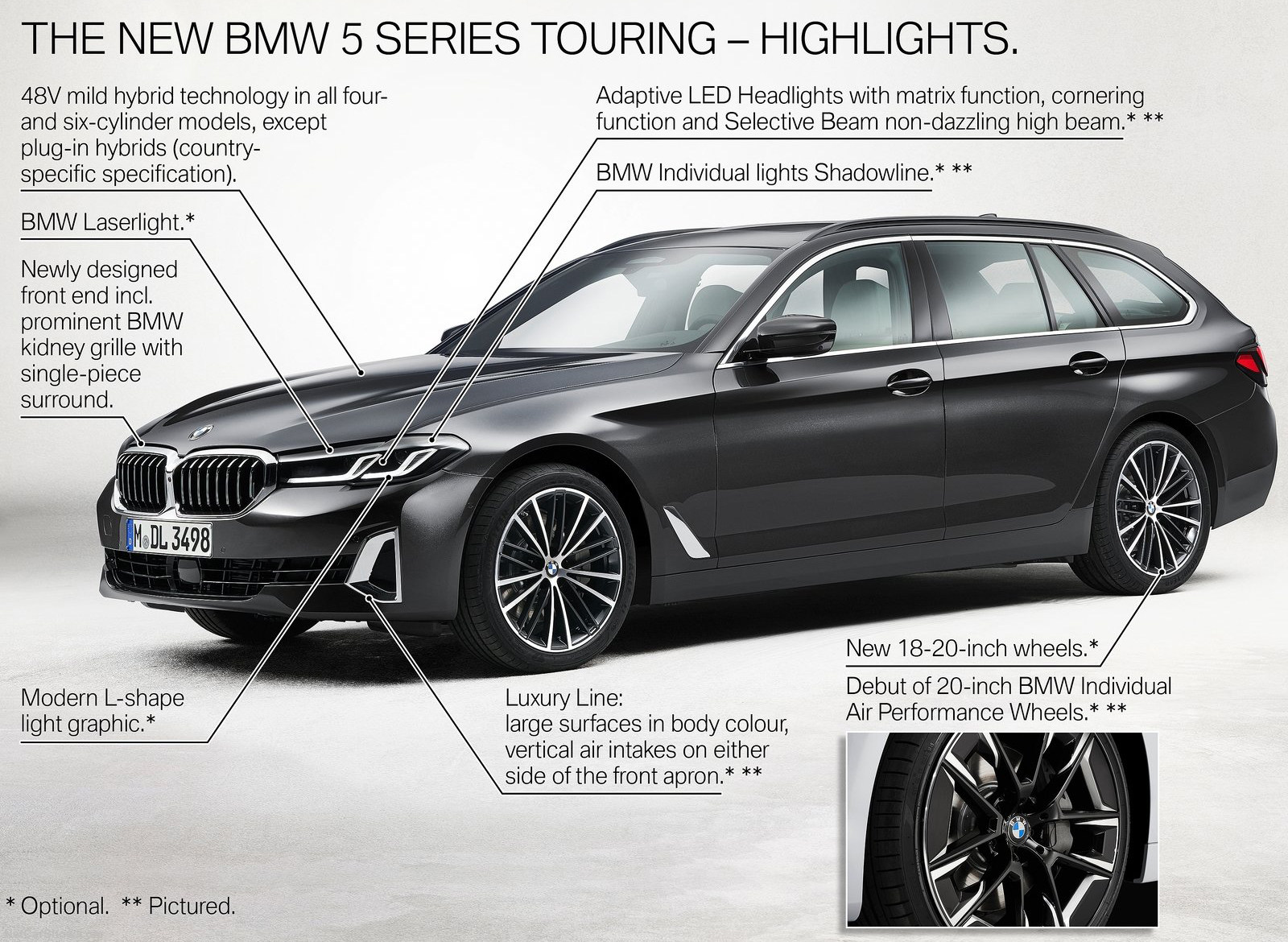 由于新5系的外观采用了更多修直的线条,棱角也更突出,没有现款那么圆润,所以使得海外版本的5系风阻系数从原来的0.22 Cd调整为0.23 Cd,旅行版为0.26Cd,而国内的参数未知,有待验证。