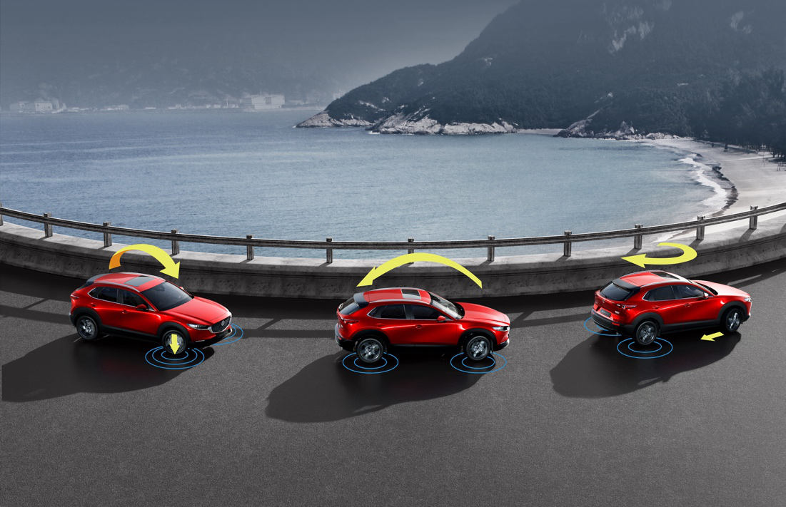 MAZDA CX-30同样搭载了「创驰蓝天车辆动态控制技术」的最新成果——「GVC加速度矢量控制系统」的升级版——GVC PLUS。当车辆进入弯道时,GVC PLUS系统通过控制发动机扭矩输出,提高车身的响应性能,新增的「回正力矩强化控制」系统,抑制过度转向的同时,提高转向中和出弯道的车身稳定性,让驾驶者在弯道驾驶中信心更强、安心感更足。