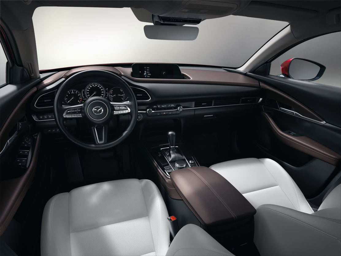 内饰方面,MAZDA CX-30采用了简洁而开放的环舱设计,带来精致而丰盈的车内空间。以主驾驶为中心的对称环抱式布局,让驾驶视野、驾驶信息一目了然。极具「手工感」的缝制工艺和软质、真皮材料的大面积运用,以及镀铬金属饰条的精心点缀,为MAZDA CX-30带来远超同级的高级质感。应用「感性工学」的旋钮按键,马自达工程师以0.01mm的增量设定开关操作,让用户感受到操作感觉的细腻而富有质感的变化,带来治愈的快意。