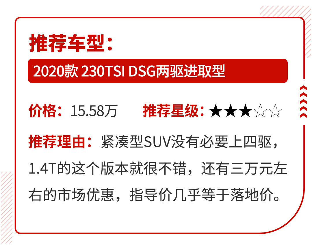德味、外形、年轻个性、运动性这些都是探歌身上显而易见的优势,整体上也继承了大众品牌“无明显短板”的产品特质,原本过高的价格也通过较大幅度的市场优惠,使得探歌的性价比变得比较可观。从探歌身上,我们也可以看到一汽-大众对于紧凑级SUV的塑造有着自己独特的见解,后续推出的探岳也是成为了爆款车型,为消费者提供了更加丰富的选择。