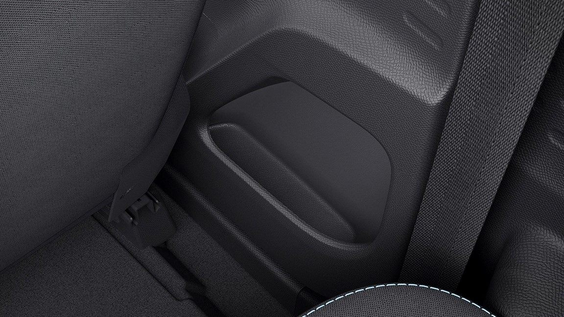 而后排座椅为一体式设计,双门的造型也缺少了后门板,对此宏光MINI EV将后排乘客的储物格设置在门板后侧,这也是后排唯一的储物空间。