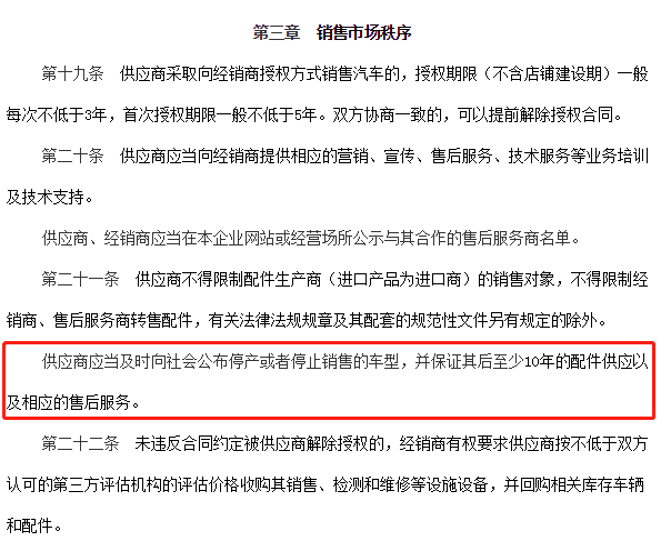 在国内,按照《汽车销售管理办法》 的规定,即便厂家停产或者停止销售车型后,也要保证其后至少10年的配件供应和售后服务。举个例子,西亚特退出了中国市场,但进口大众仍要承担西亚特的售后服务。