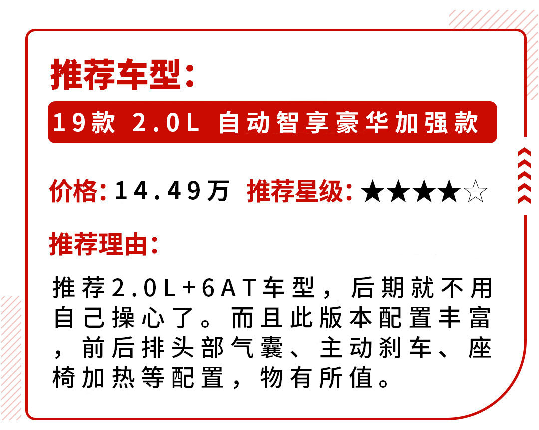 这款车的轴距达到了2716mm,买这款车的人对其空间都是比较满意的,因为尺寸的原因在竞品中占有优势。而领界上市已有一年的时间,目前口碑表现稳定,值得一买。领界的小改款车型也由不久前上市,丰富了其配置,让它更有竞争力。