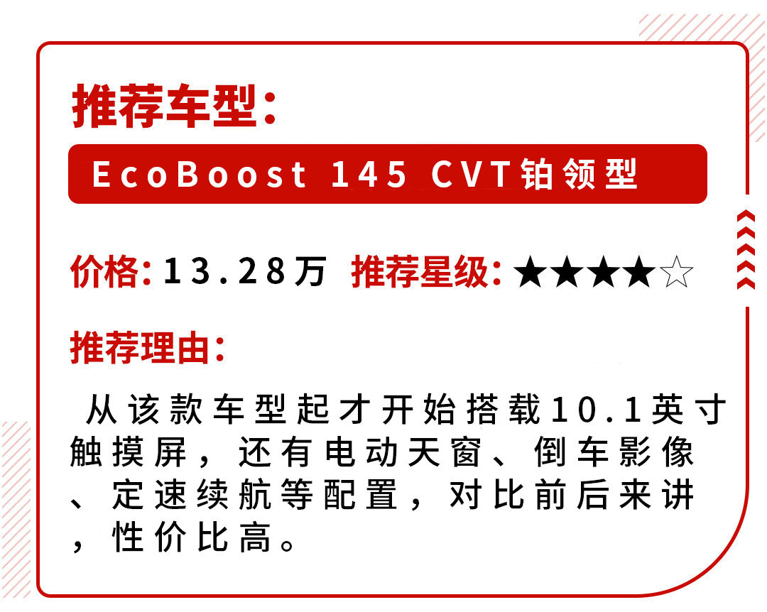 动力不是这款车的亮点,1.5T+CVT也只是为了满足平常驾驶的平顺性。这款车真正的卖点在于内饰和空间,中控有大量的线条勾勒,皮质、饰板等材质加以融合,看上去比较高档。而且它还搭载了全新的信息娱乐系统、福特Co-Pilot360智行驾驶辅助系统以及带有4G LTE无线热点功能的“福特派互联”。在车机这一块,领界要比前面两车走得更远。