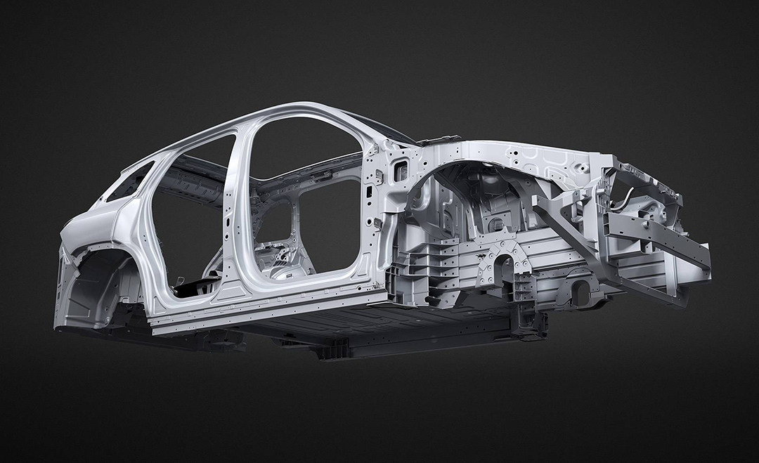 捷豹I-PACE采用了6000系列的铝合金材料对重要部位进行加强,还有3000系列等,车身抗扭刚度仅为36200N·m/deg,白车身净重为257kg。