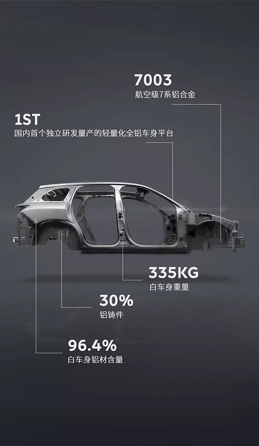 以蔚来ES6为例,车身架构采用了7075航空级高强度铝,7075号称是铝合金品类中最坚韧的一种,自然能给予最大程度的可靠性保障。