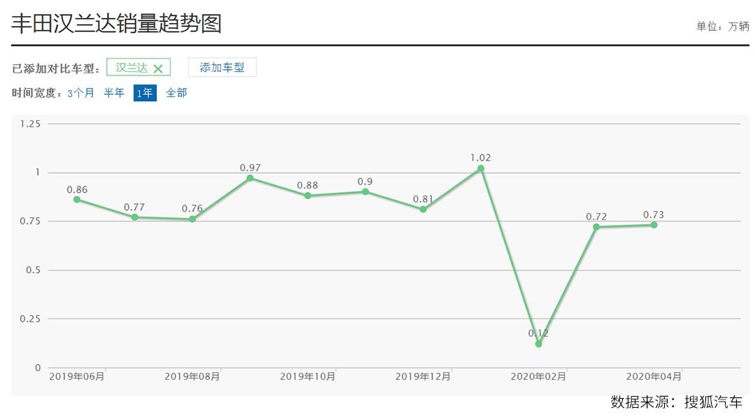 汉兰达销量向来稳定,除了今年2月受疫情影响之外,其他月份的销量都基本维持在8000台左右,是中型SUV市场雷打不动额销量冠军。