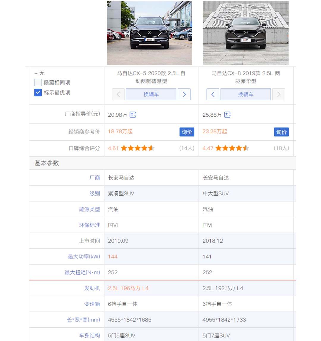 而说到车身宽度,买买君就要再插一句,CX-5的宽度也恰好是1842mm,也正因为如此,很多人质疑CX-8是CX-5的拉皮车。对于这问题,买买君不置评论,我就放张图片,大家感受下吧!