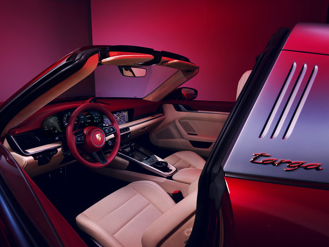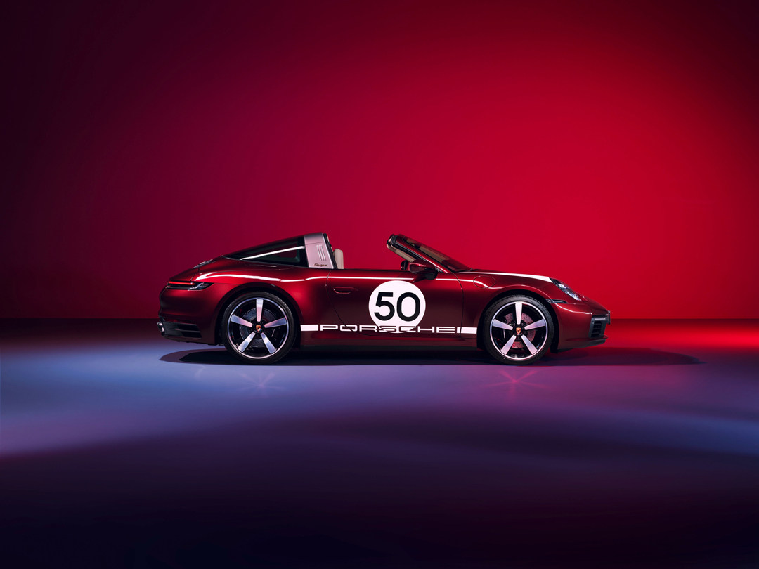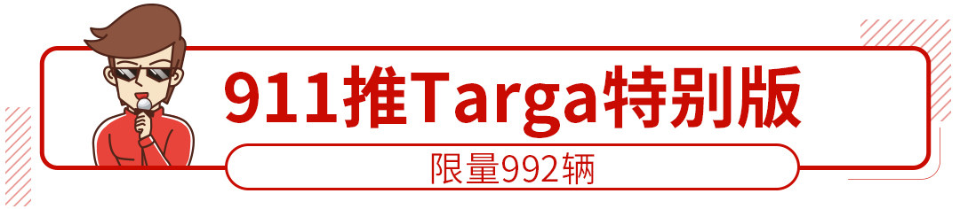 近日,保时捷发布了一款特别版的全新911 Targa,将限量992台,为了突出该车的特殊性,保时捷还为购车用户提供了一款特殊版腕表可供选购。特别版911 Targa基于全新911 Targa 4S车型打造,并提供名为“樱桃红”的特殊版车漆,在大灯后方以及侧面门板上加入了白色拉花和车号;防滚架两侧的Targa字样和尾部的保时捷英文logo都变成了金色,并且在发动机进气格栅处加入了一块特殊的车型徽章,一切都是为了证明限量版的优越性。内饰方面在门板和座椅上采用灯芯绒材质,并且仪表、logo等地方也使用上了复古的绿色或金色元素。动力方面,跟全新911 Targa 4S一样使用3.0T水平对置六缸发动机,最大马力450匹,最大扭矩530N·m,匹配8速双离合变速箱,百公里加速3.6秒。