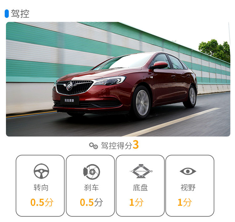 小结:48V电机的辅助弥补了三缸发动机的不足之处,因此英朗轻混的驾驶上也可圈可点,带有一点运动的气息加上不错的动力表现,能够享受到一些家用车以外的不同驾驶感受,因此驾乘方面的分数也算不错。