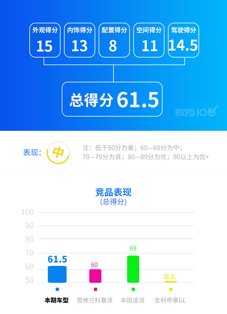 小结:其实,整体来看,英朗的配置相对来说比较低,在舒适性配置方面的配置上寥寥无几。在驾驶辅助方面,英朗全系并没有主动刹车、车道偏离这些功能,因此得分为零。因此,从配置上也可以看出,为何英朗的优惠能够如此之大,一分钱一分货仍然是真理,配置方面的缺失也导致了英朗退出了和卡罗拉、轩逸等车型在十万元以上市场的竞争,不仅仅是因为三缸。