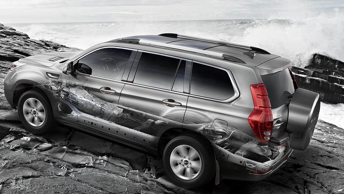 在“三把锁”四驱系统的加持下,可以通过车内电控按钮实现前/后桥差速锁完全锁合,这时发动机可将牵引力传递给有附着力的车轮,因此车辆在极限越野路况时脱困能力更出色。