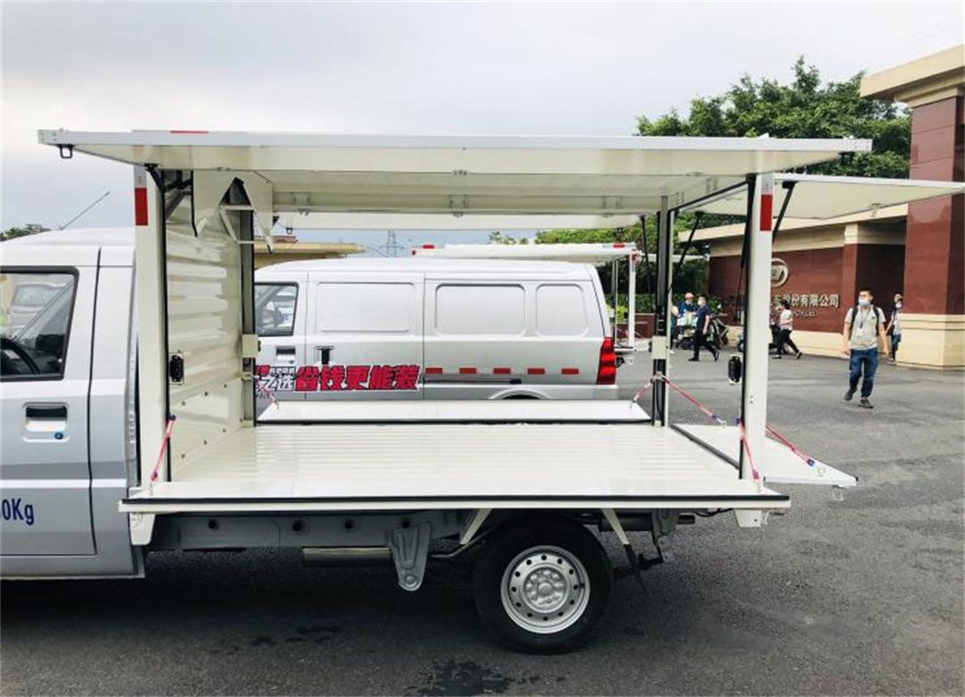 多向的开口以及超大的面积,五菱荣光小卡/新卡翼开启的货厢,能够很好的形成一个小型“商店”,满足消费者摆地摊的需求。