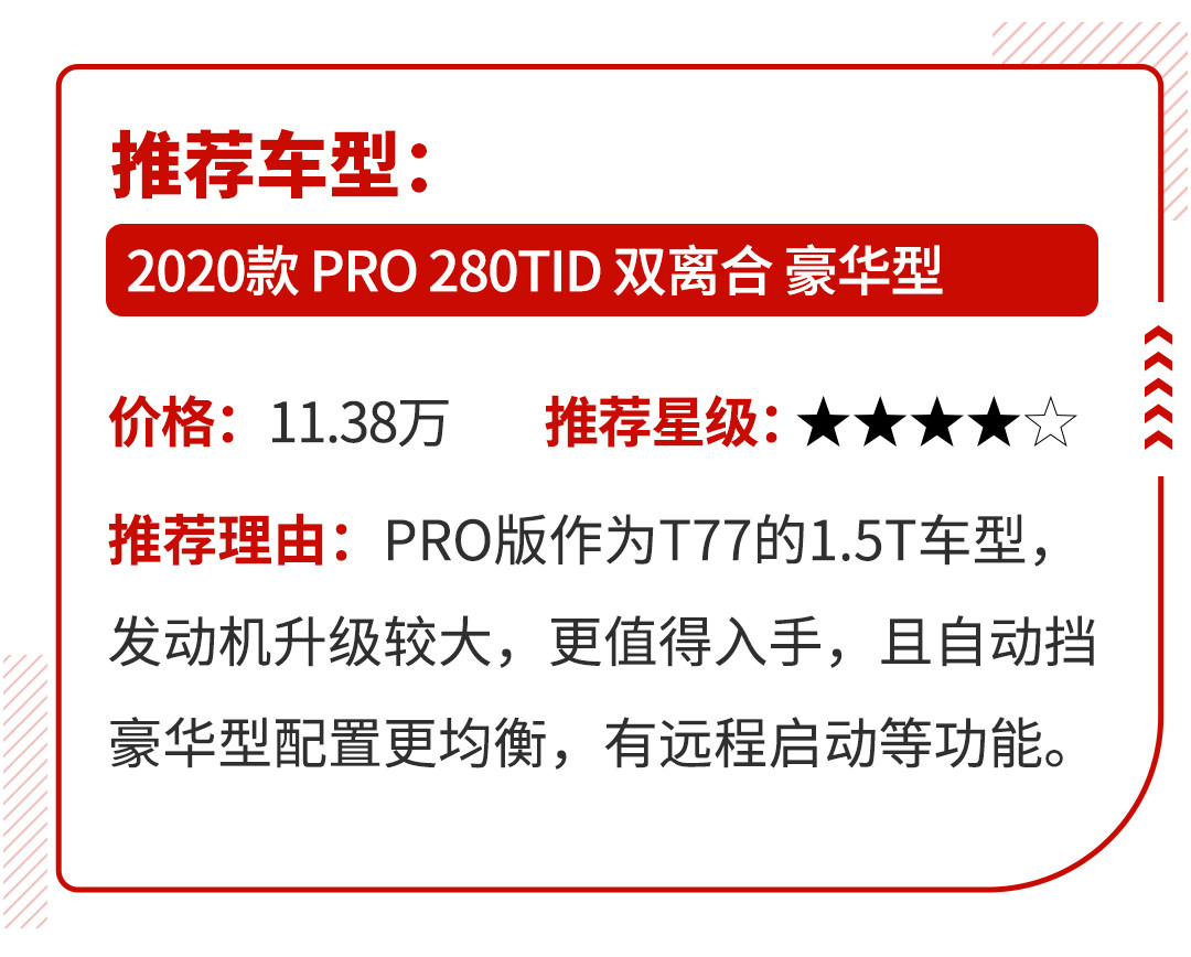 作为一台PRO车型,奔腾T77基础配置并不低,例如全系标配LED大灯、后方影像、后倒车雷达、定速巡航、无钥匙进入等配置,就连最低配的手动版都有座椅加热,而在两款顶配车型上还有6安全气囊和辅助驾驶系统,就冲这个高标准的做事态度,你受得了吗?