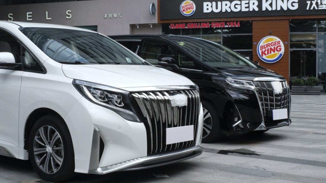 即便遮住了车辆Logo,车型之间还是非常容易分辨的。最左侧别克GL8的家族式前脸还是具有非常高的辨识度,而中间和右侧的车辆在设计上确实有着比较高的相似度,但右侧的黑色MPV镀铬装饰采用了更多直线设计,明显感觉更加沉稳,也符合埃尔法的高端商务定位,而中间那款自然是换了全新设计的传祺GM8大师版。