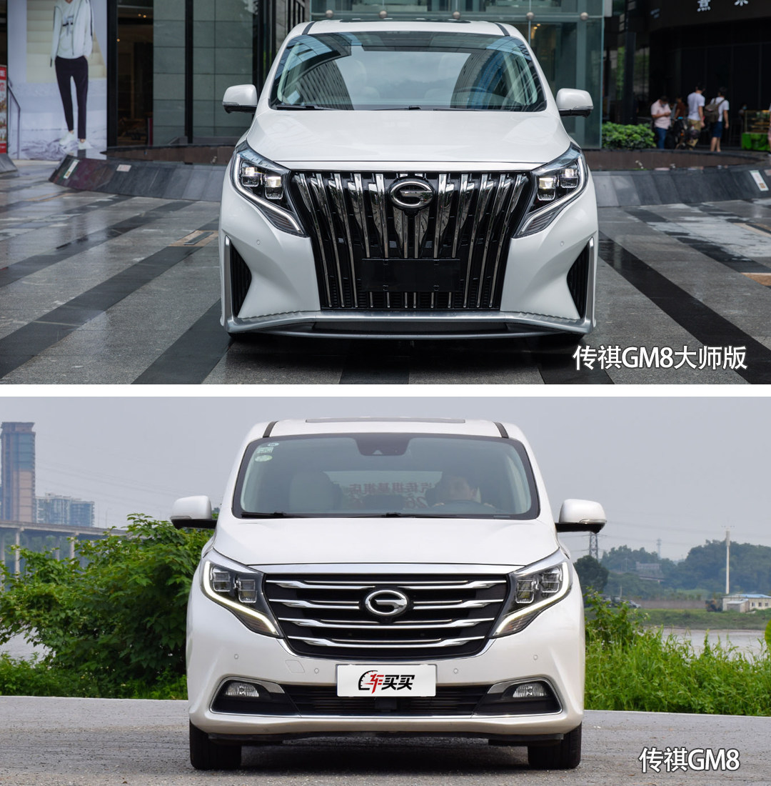 与传祺GM8经典前脸造型相比,“震天翼”式的竖条进气格栅对比传统横条造型拥有更好拉伸前脸高度的效果,两侧雾灯区域也由原来的造型改为了导风槽设计,大师版的前脸造型感觉对比经典款确实更加耐看且符合当下设计潮流。当然车辆设计好看与否还是因人而异,但在笔者看来大师版的设计明显更符合个人的喜好,不知道大家更喜欢哪款呢?
