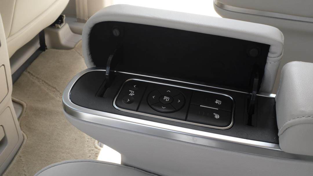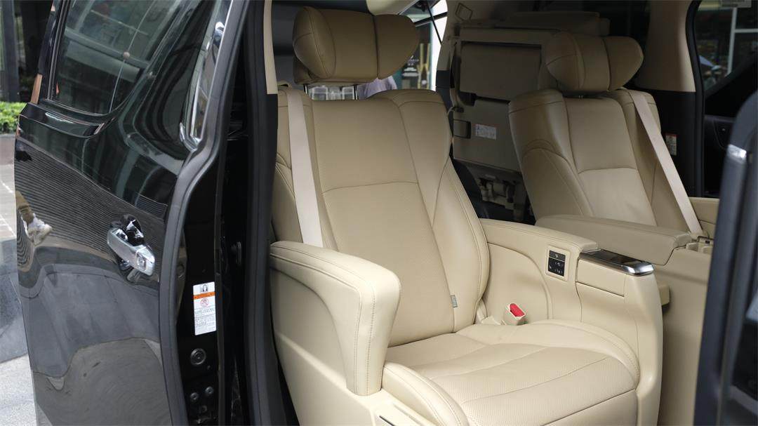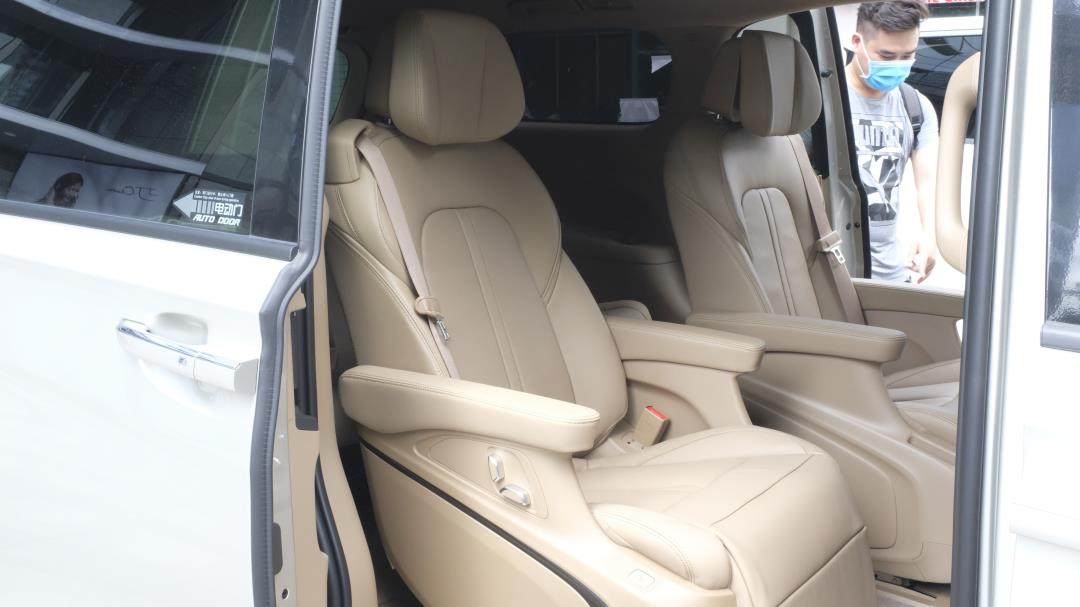 我们先来看看在场“身价”最高的丰田埃尔法,第二排座椅的腿拖设计是大多数大6/7座MPV的常见配置,埃尔法自然也不例外,但座椅功能上仅提供加热功能在南方地区好像实用性并不大,天窗上方有供第二排使用的显示屏。值得一提的是埃尔法第二排座椅提供了450mm的超大调节空间,因此在第三排不实用的情况下第二排座椅可以调节到非常靠后的位置。