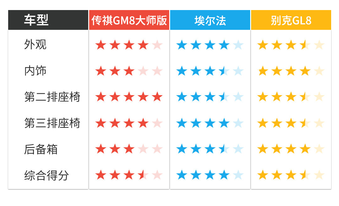 如果按照不同的体验进行评价,笔者在此次体验中对三款MPV的评价是这样的。