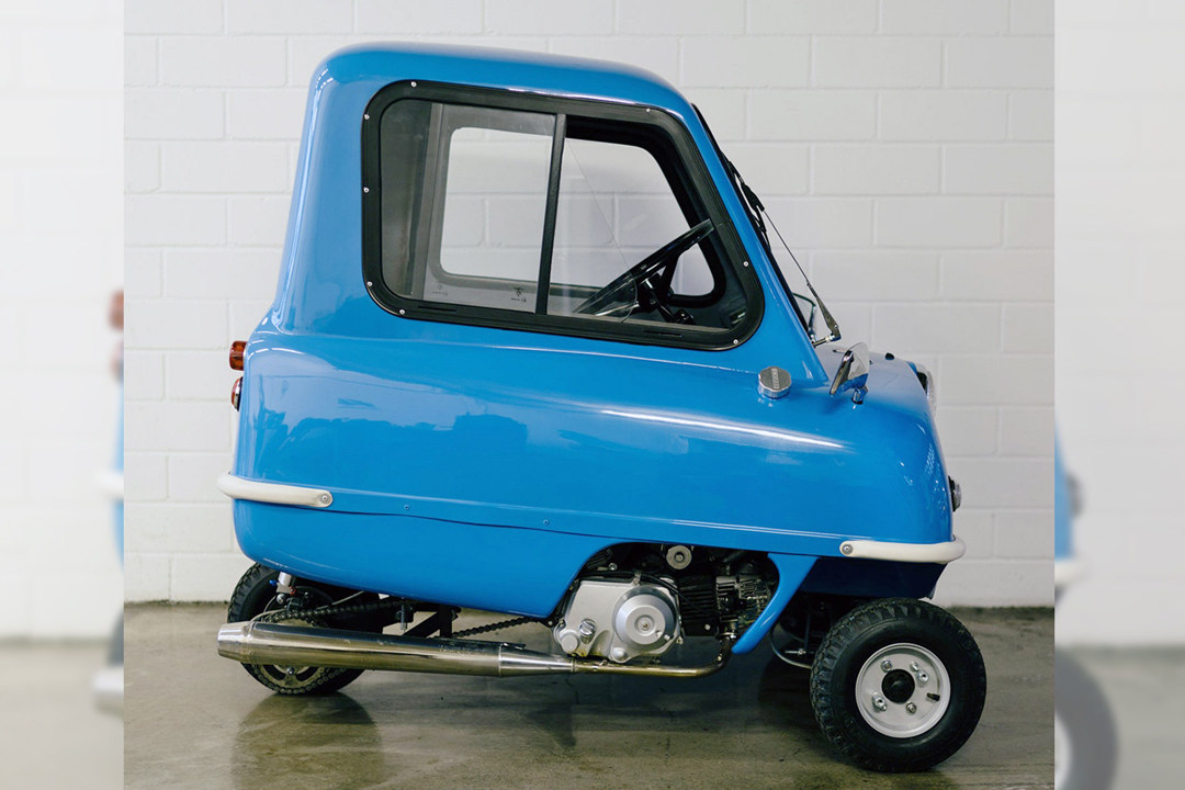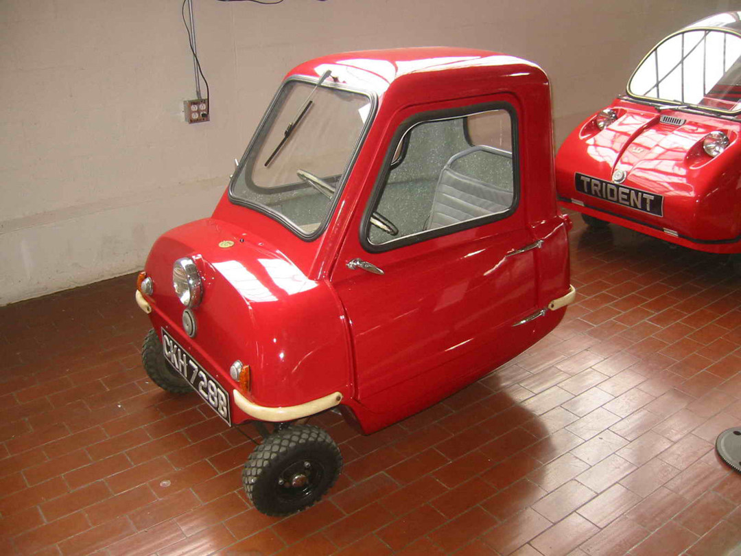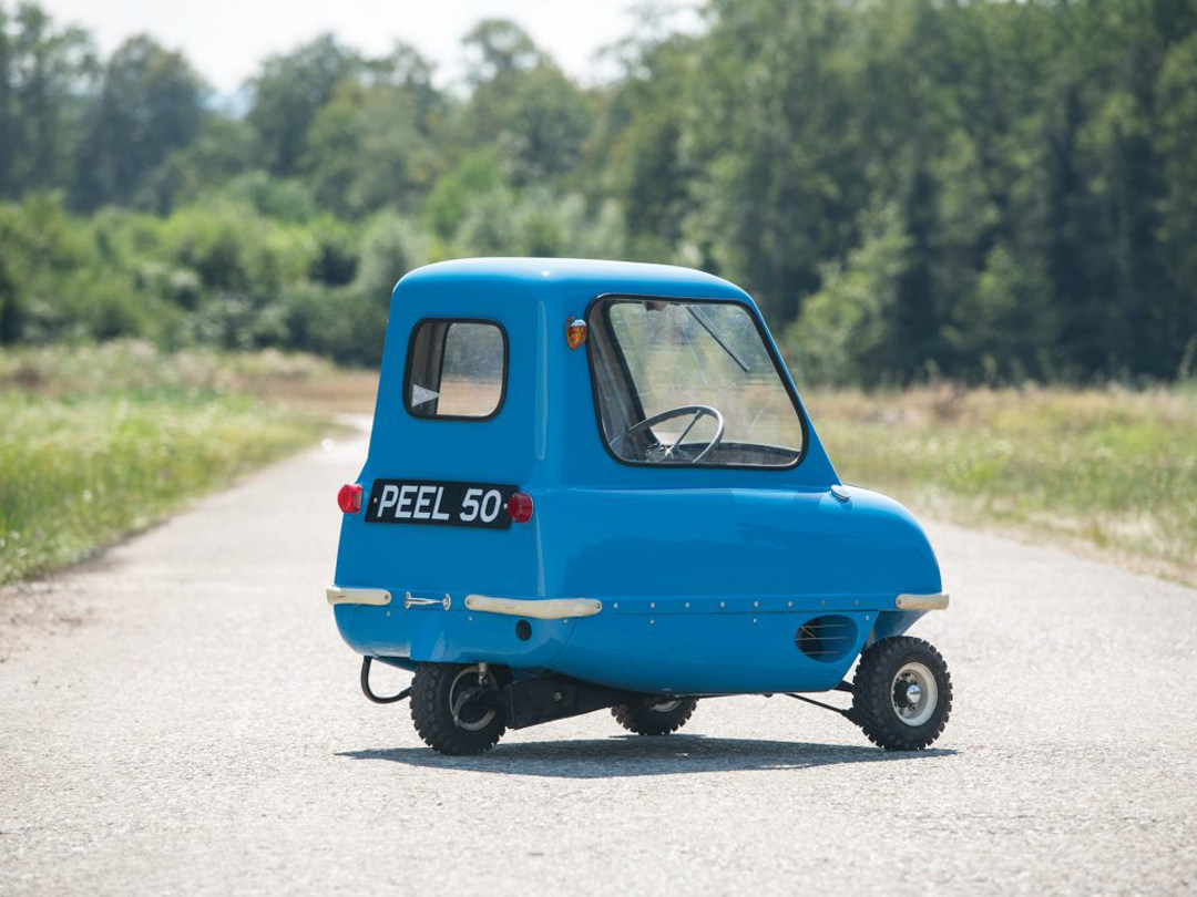 Peel P50于1963年出现,当初的价格只有200英镑。但是这款车的重量只有59kg,车身小巧,长宽高分别为1370/990/1200mm,并且只有三轮设计,当初由Cyril Cannell设计,ManX Peel公司生产,设计之初为代步工具,所以里面只有1个座位。但是这个座位是相当考验人的身材,假如你的一名彪形大汉,可能你会坐不下。尽管Peel P50完全不符合当今的汽车安全标准,但英国法律却允许这款车合法上路,2012年,英国车商Peel宣布,将在英格兰重新限量生产Peel P50。