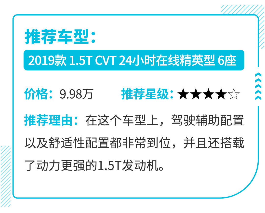 动力方面,该车同样提供了1.5L和1.5T两种动力选择,均匹配6速手动或CVT变速箱,但是鉴于动力差别以及价格来看,选择147匹的1.5T发动机会是一个更好的选择。毕竟要是在满载的情况下,99匹动力再搭配CVT这个组合,想想也是不容易啊。