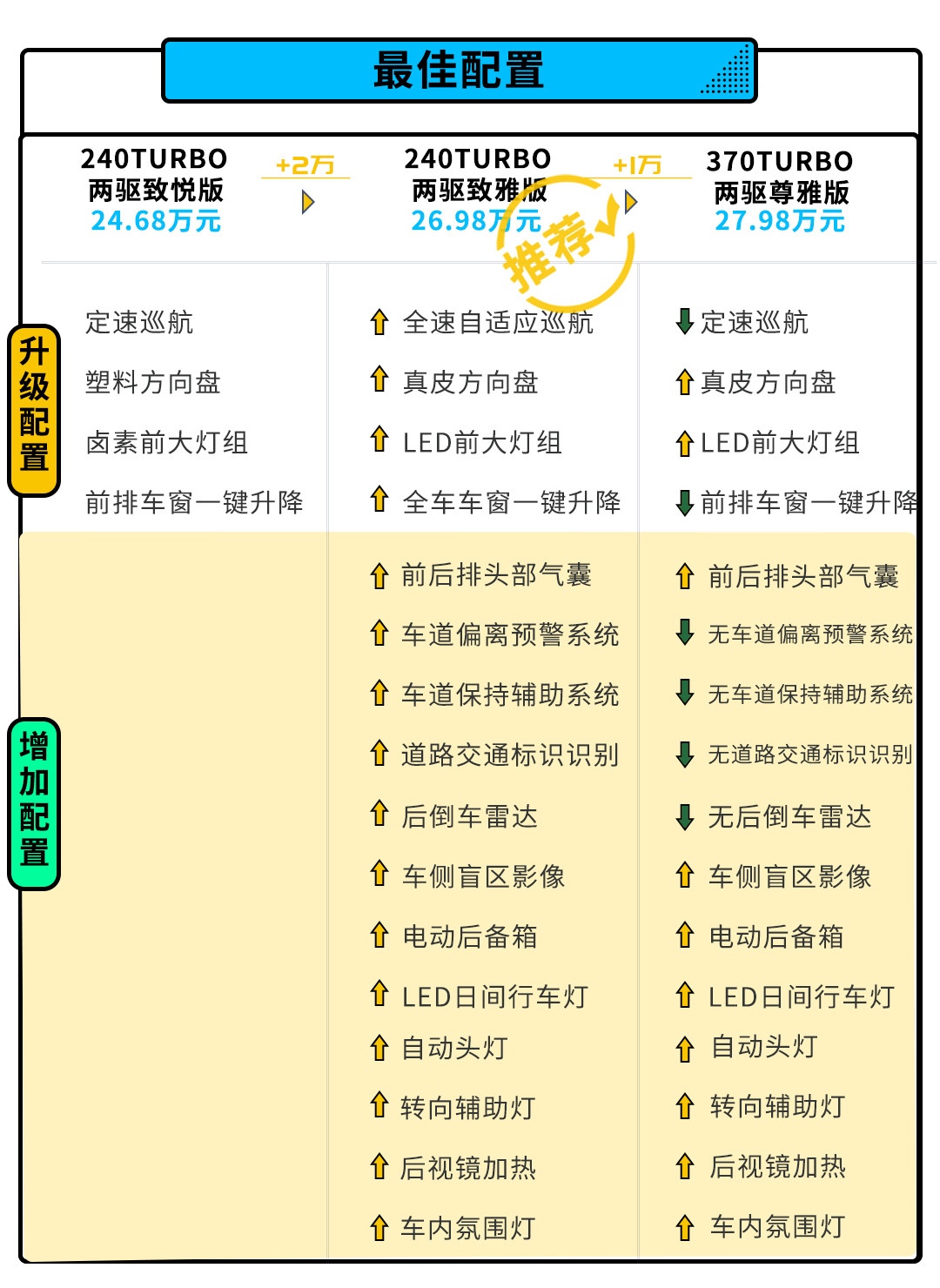 本身老款UR-V的配置就在同级中处于领先地位,新款车型的进一步升级更是让它有了“鹤立鸡群”的姿态,这般标配在同级车型中都能算得上是少有了。在这种配置下,哪款车型最具性价比呢?