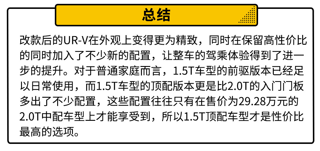不难发现,新款UR-V在定价上与老款相比并没有发生变化,也正是这种不变,让它的配置升级看起来更加有诚意。