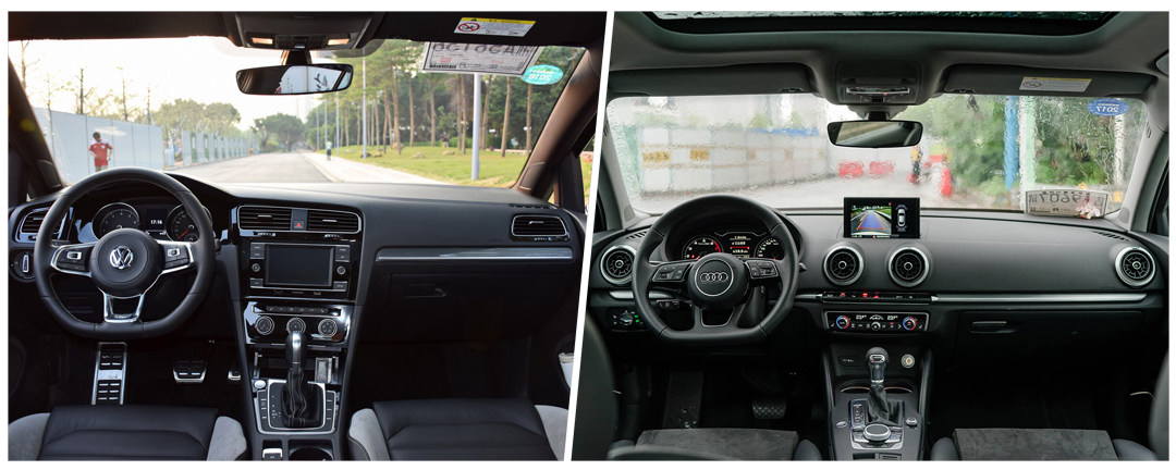 虽然大多数零部件都是通用的,但很多人可能会觉得奥迪A3作为豪华品牌,在做工、用料这些无法具体量化的方面是否存在区别,但实际对比起来好像也没有,虽然中控台上方采用了一定软搪塑材料,但整体还是硬塑料居多,也没太能体现出多高级的质感,和高尔夫放在一起对比两车内饰风格都十分简洁。而对比两车1.4T入门版车型高尔夫(15.42万)和A3(18.92)的差价超达3.5万,而且在这一版本中高尔夫甚至还拥有疲劳驾驶提醒、倒车影像、后座出风口等更全面的功能配置,综合配置差异来算两车差距绝不止3.5万。