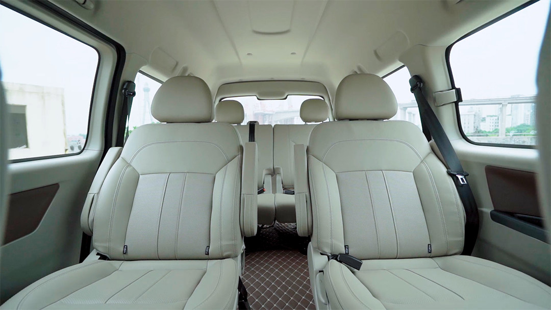 菱智M5EV提供5座、7座和9座三种不同实用座椅组合,7座车型的第二排是两个独立的“航空”座椅,不但靠背角度可调节,座椅两侧还配备了独立的扶手,舒适性极好。