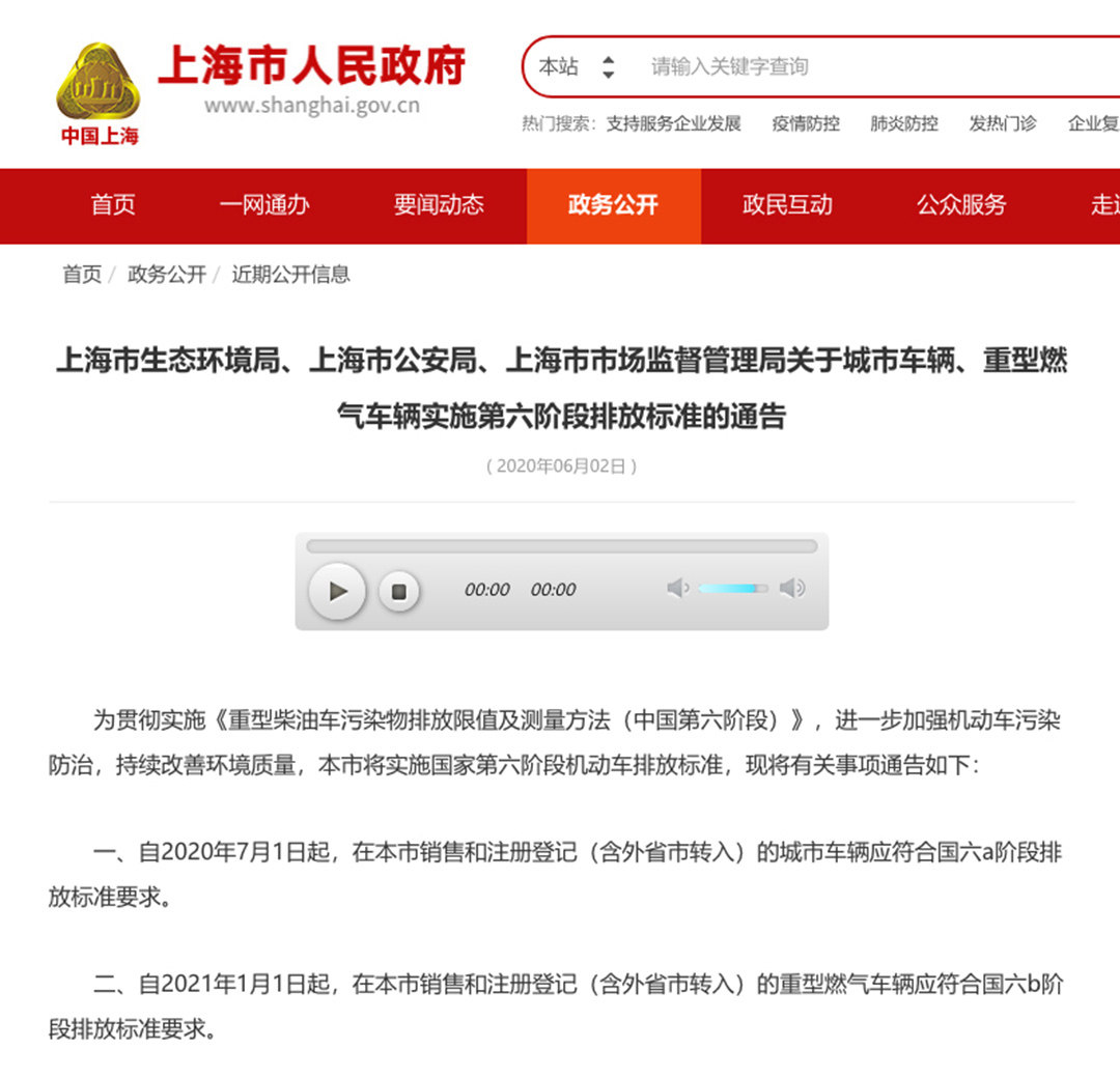 首先是上海公布了关于国六排放实施的通告,通告中明确指出,自2020年7月1日起实施国六a阶段,2021年1月1日开始实施国六b阶段排放。