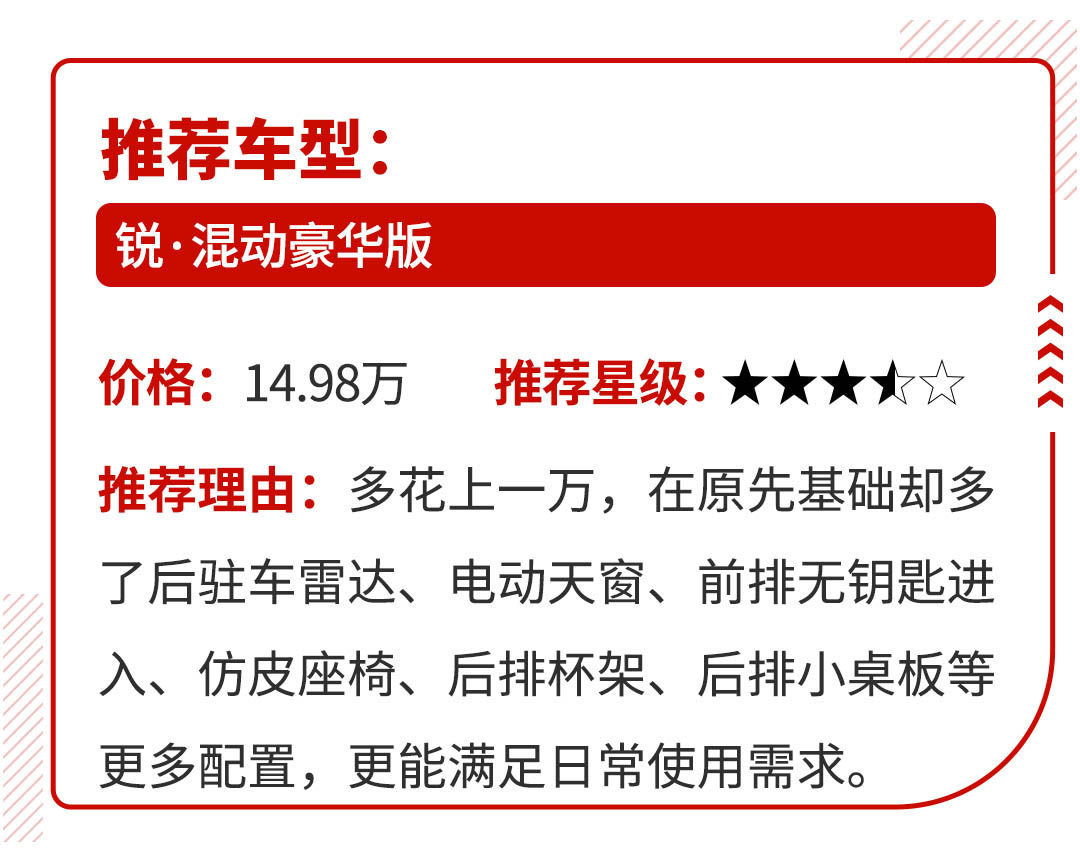 根据大部分消费者追求性价比的角度出发,教授推荐豪华版版本车型。多花上一万,在豪华版这个版本上我们可以得到后驻车雷达、电动天窗、前排无钥匙进入、仿皮座椅、后排杯架、后排小桌板等。一万的差价换来这么多使用配置相当划算,可惜的是前两个版本并没有配备定速巡航这一个便利功能。
