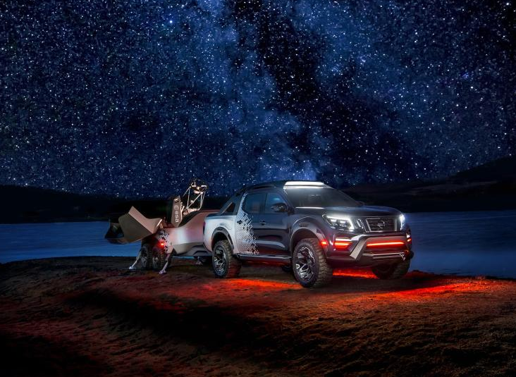 日前,日产纳瓦拉Dark Sky Concept(暗夜版概念车)在国内正式亮相,该车是日产联手欧洲航天局(ESA)基于欧洲版纳瓦拉共同打造的一款概念车,带有观测装备的它希望成为移动的天文实验室,让天文学家可以驾驶这款车前往一些远离城市灯光的偏远地区,以便更好地展开观测工作。日产官方称,该车的设计灵感来自“宇宙”,前脸看上去极具科幻感,造型复杂且极具力量感的轮圈让整车侧面显得非常丰满。动力方面,该车搭载的是一台2.3T双涡轮增压柴油发动机,其最大功率为190马力,峰值扭矩为450牛·米。纳瓦拉在国内市场其玩乐属性非常明显,凭借十分强悍的越野能力,它赢得那些喜欢户外活动和越野的消费者不少喜爱,仅从这辆车的外观来看,又能为许多纳瓦拉的车主带来了新的改装方案和想法了。