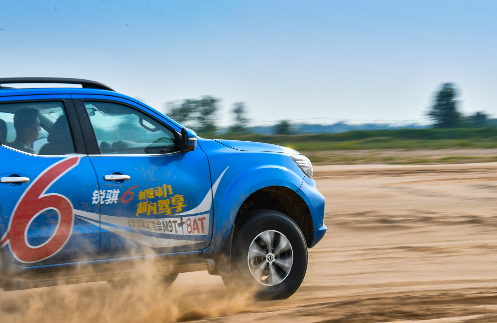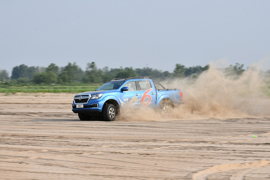 沙滩又是另外一种体验了,油门到底,感受着发动机嘶吼的声音,尔后猛打方向盘,漂出一道优美的弧线,想不到皮卡也能用来漂移吧。实际上这一项目是为了考验车身姿态的稳定性,好不好,用事实来说话。现场的媒体老师都玩疯了,锐骐6依旧坚挺。