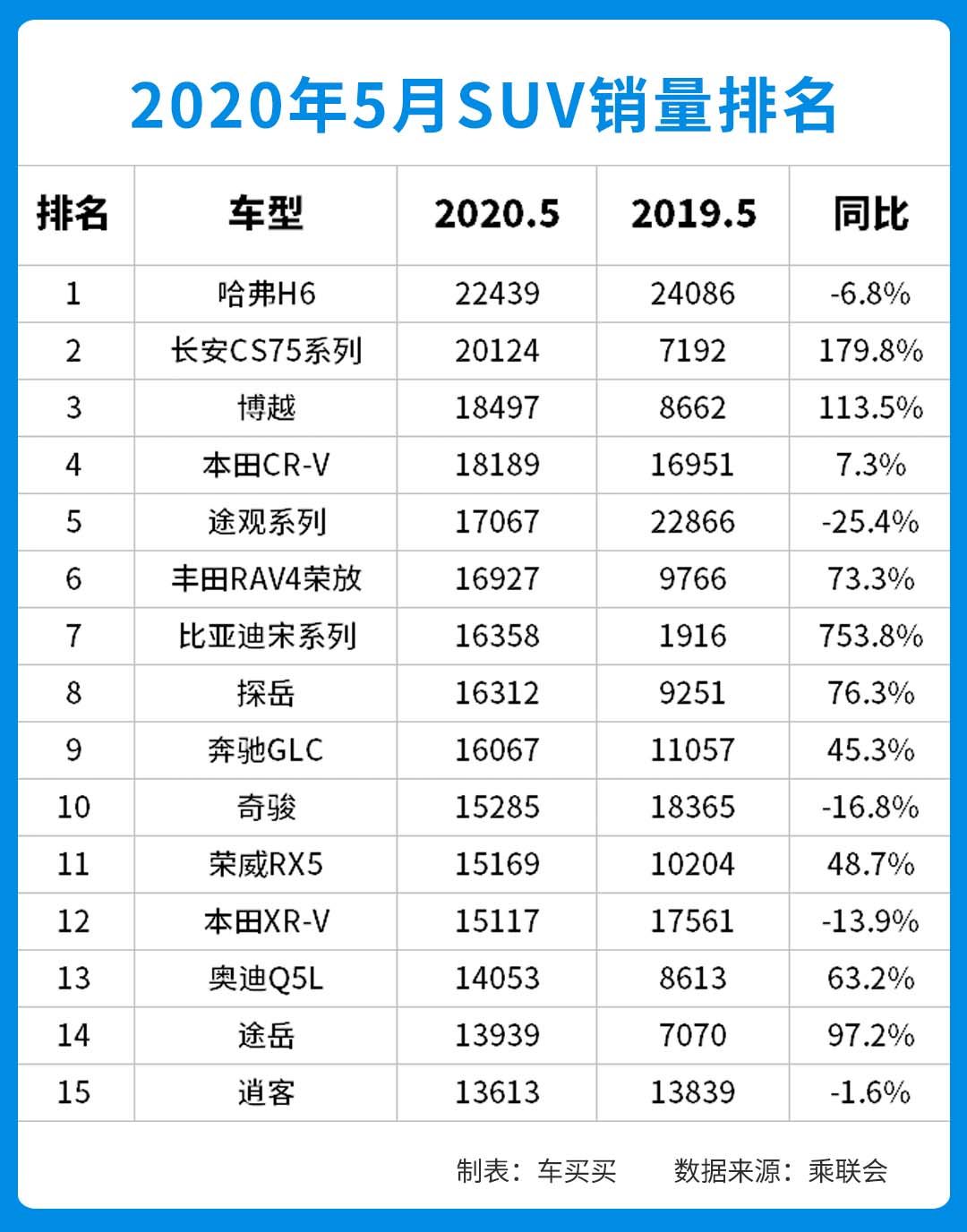 在SUV方面,5月份销量75.5万辆,同比增长13.1%,而上一次出现两位数的正增长还是2018年4月份;另外值得一提的是,这是继去年11、12月之后,SUV市场再一次出现连续两月正增长。