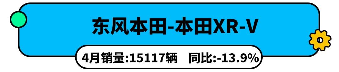 本田XR-V是5月份唯一一款入榜TOP15的小型SUV,当月销量为15117辆,较去年同比下降139%。