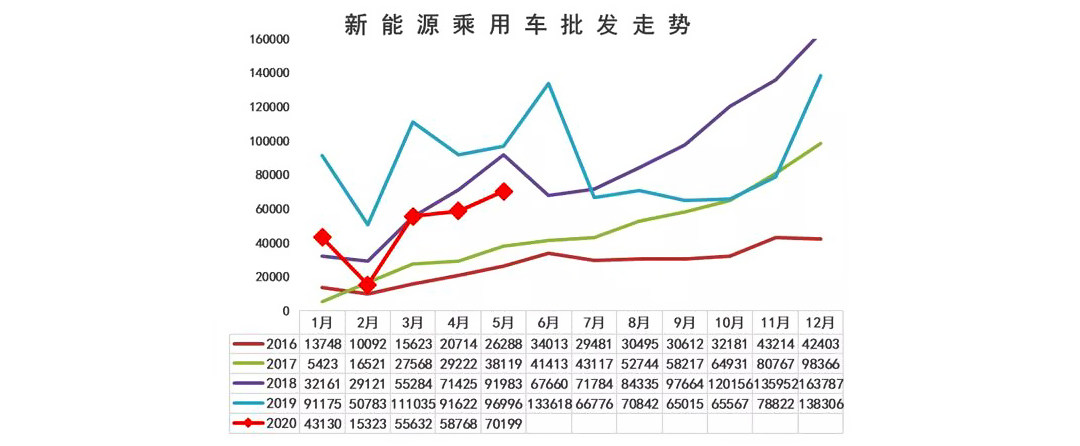 五月可以说是迎来了新能源车市的回暖状态,伴随着各新能源厂商车型不断推新、市场营销节奏的加速,再结合各地方政府的“救市”政策相应出台,新能源汽车销量数据回升明显。