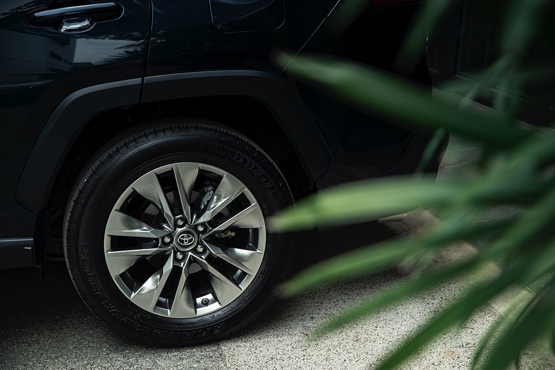 另一个差异是轮圈的样式和尺寸,威兰达的轮圈样式更具豪华精致质感,也是有点向雷克萨斯靠拢;尺寸方面威兰达的18英寸起步,本次测试车型轮圈规格为235/55 R 19;而RAV4荣放的轮圈偏运动也行,以5辐式造型为主,尺寸18英寸起步。