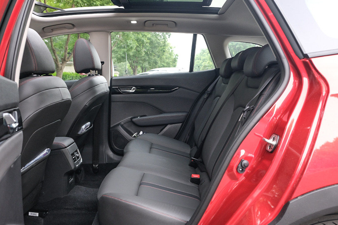 后排空间方面,不要以为它外观视觉重心较为低矮就会有点压抑感,实际上该车的头部空间并不差。采光面积非常大的全景天窗更是该车的一大亮点,同时还可以通过语音控制其开闭。后排座椅无论高度还是角度都十分合理,较为遗憾的是缺少了中央扶手箱。