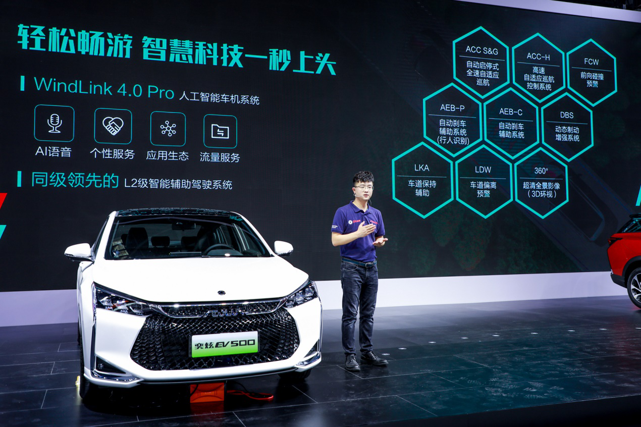 愉悦智联,畅享智能汽车生活:在智能化配置上,风神奕炫EV500搭载了全新网联式专属智能座舱——WindLink 4.0 Pro人工智能车机系统,以及优越同级的L2级智能辅助驾驶系统,尽享愉悦智联的车机互动与更加愉悦、智能的出行体验。WindLink 4.0 Pro人工智能车机系统能够实现AI智能云端语音识别, 具有免费车联应用流量+车载4G高速热点智睿交互、手机APP远程控制+OTA在线升级、全新自由行导航系统等构成其智慧生态的智慧互联功能。而L2级智能辅助驾驶系统则配备了ACC-S&G自动启停自适应巡航、AEB自动紧急制动辅助系统/FCW前向碰撞预警系统、LDW车道偏离预警/LKA车道保持辅助与360° 100万像素超清3D模拟影像等大幅提升驾驶安全性的智能驾驶功能。